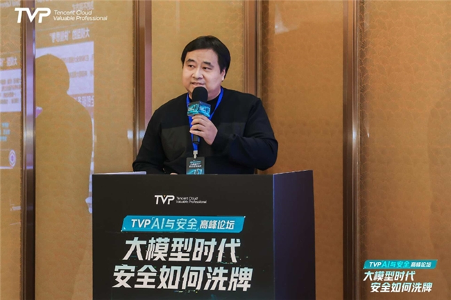 腾讯安全副总裁、科恩实验室负责人 吴石做《安全领域大模型构建范式与实践》的主题演讲。